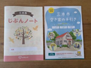 エンディングノートのような「じぶんノート」自分や家族のこと、財産、もしもの時のこと、大きな文字で読みやすく書きやすい内容です。「空き家の手引き」空き家等に対する補助事業もまとめられていて便利な冊子です。どちらも三木市役所・公民館でも配布されているようですので、ぜひご活用ください。
