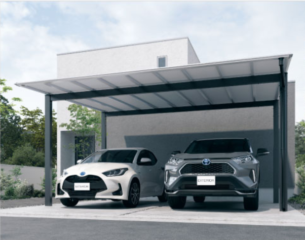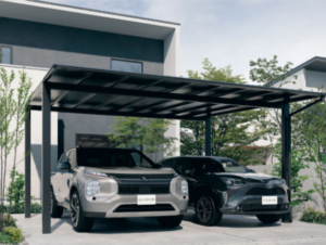 フレームから屋根パネルまで、すべてブラックで統一したオールブラックカーポートも人気です。